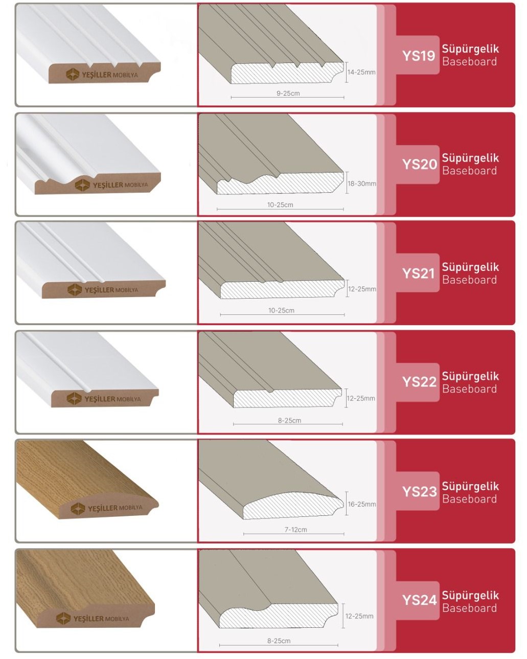 Yeşil Özler’in üstün kaliteli süpürgelikleri, çelik kapılarınızın tamamlayıcı parçası olarak, hem estetik hem de dayanıklılık sunar. Farklı tasarım ve renk seçenekleriyle, yaşam alanlarınıza zarif bir dokunuş katın.